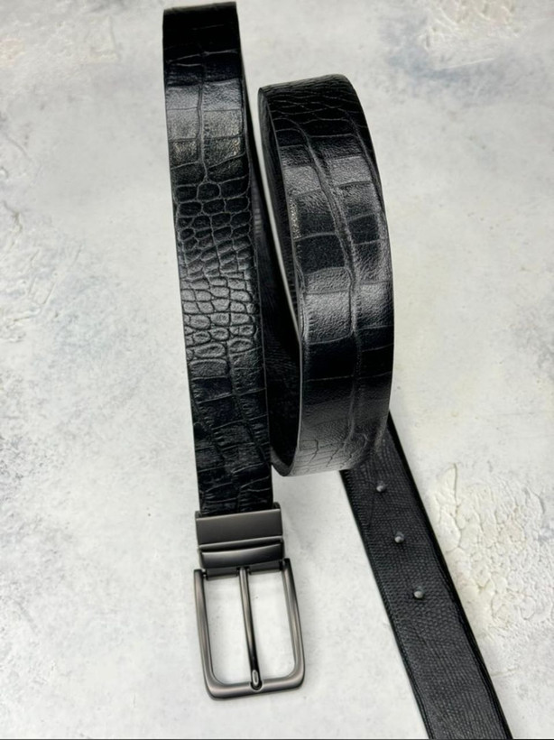 کمربند دورو چرم طبیعی با قلاب چرخشی طرح کروکودیل